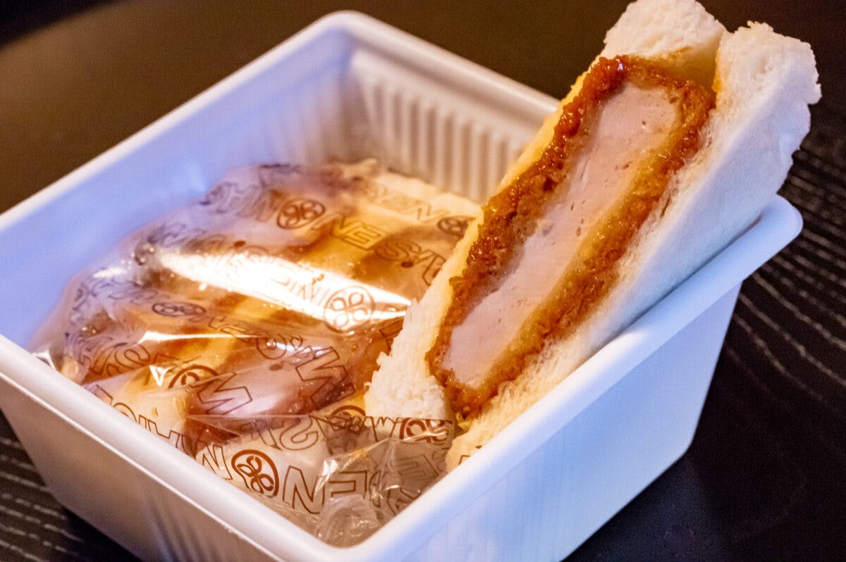 さっそく一切れ頬張ると、ベタベタとした脂っぽさもなく、しっとりとした柔らかいヒレかつ。冷めていても美味しく頂けるよう、少し味は濃いめですが、出汁の風味豊かなタレを含んだたまごと、甘みのあるタマネギのコンビネーションは最高。いつの時代も左右されない心満ちる喜びを感じます。まるで、夢の超特急のように箸が止まりません。