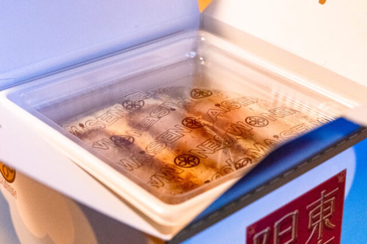 実は、お弁当選びになら、東京駅構内にある商業施設「グランスタ東京」もおすすめ。乗り換えの時間に余裕があれば、エスカレーターで地下1階まで行ってみましょう。すき焼きで有名な「浅草今半」や、トンカツで有名な「まい泉(まいせん)」が入店しており、どのお弁当も美味しそうで目移りしそうです。今回は、その中から「まい泉」の『東京駅丸の内駅舎三階建て弁当』をチョイス。非常に人気のあるお弁当で、売り切れ必至だとか。迷っているうちに完売にならないよう、見つけたら即買いですね。