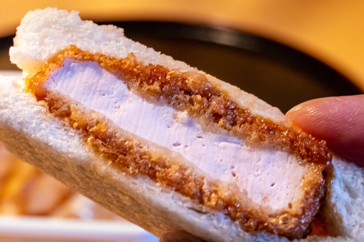 ヒレかつは、揚げ物なのにしつこくなく非常に柔らかい肉質。しっとりとしたパンと、衣にたっぷりと染みこんだ甘めのソースが一体となり、口の中いっぱいに幸福感が広がります。絶対に崩れることの無い安定した美味しさです。