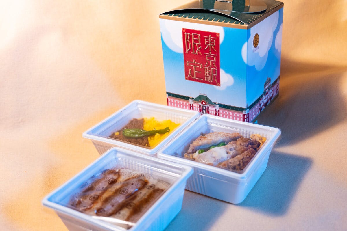 『東京駅丸の内駅舎三階建て弁当』は、文字通り東京駅限定のお弁当。東京駅「丸の内駅舎」のイラストが目印!