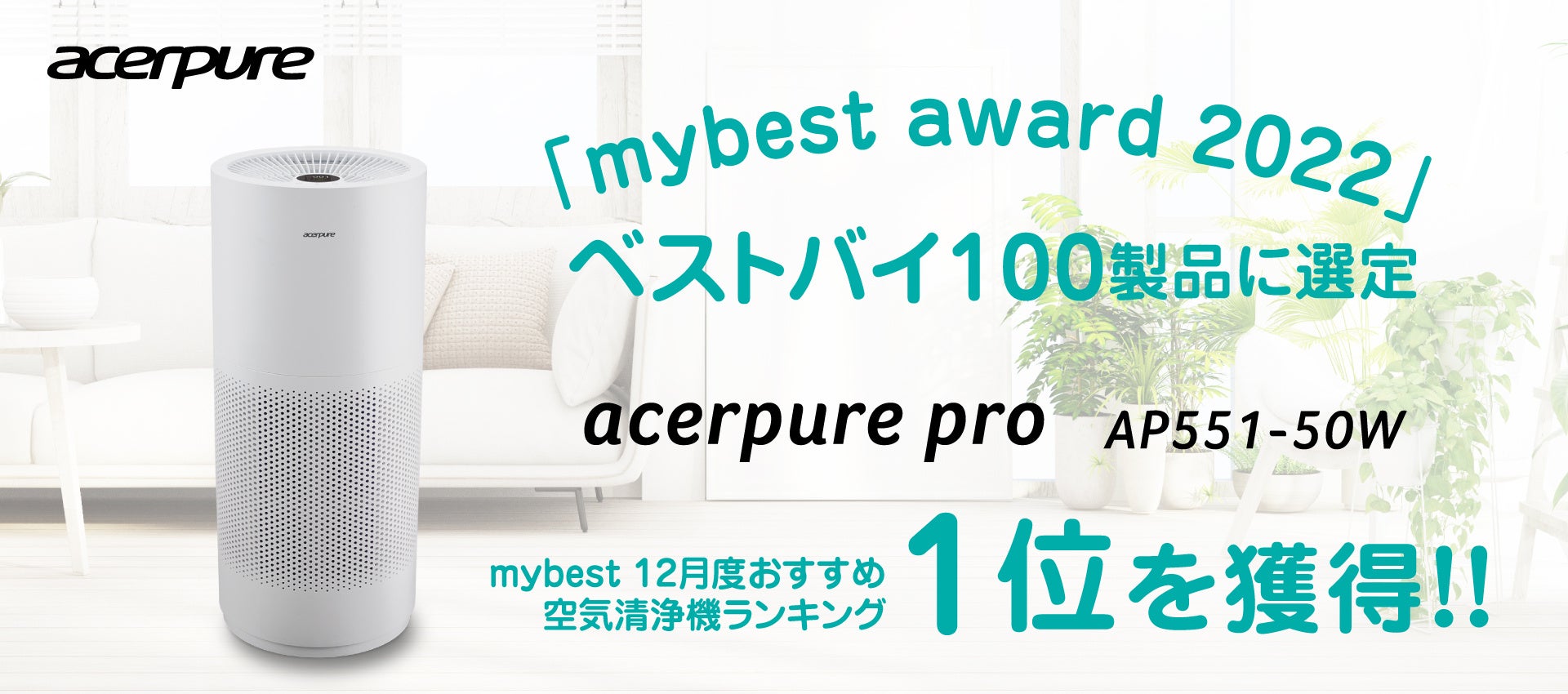 空気清浄機 acerpure pro、「mybest award 2022」にて今年のベストバイ100製品に選定!さらに2022年12月度おすすめ空気清浄機ランキングで1位を獲得! - PR TIMES