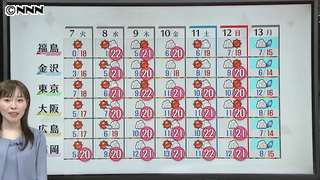 気温は高く、8日(水)から12日(日)にかけては各地で20℃くらいまで上がる見込みです。ただ、13日(月)の雨の後は一時的に寒さが戻るでしょう。