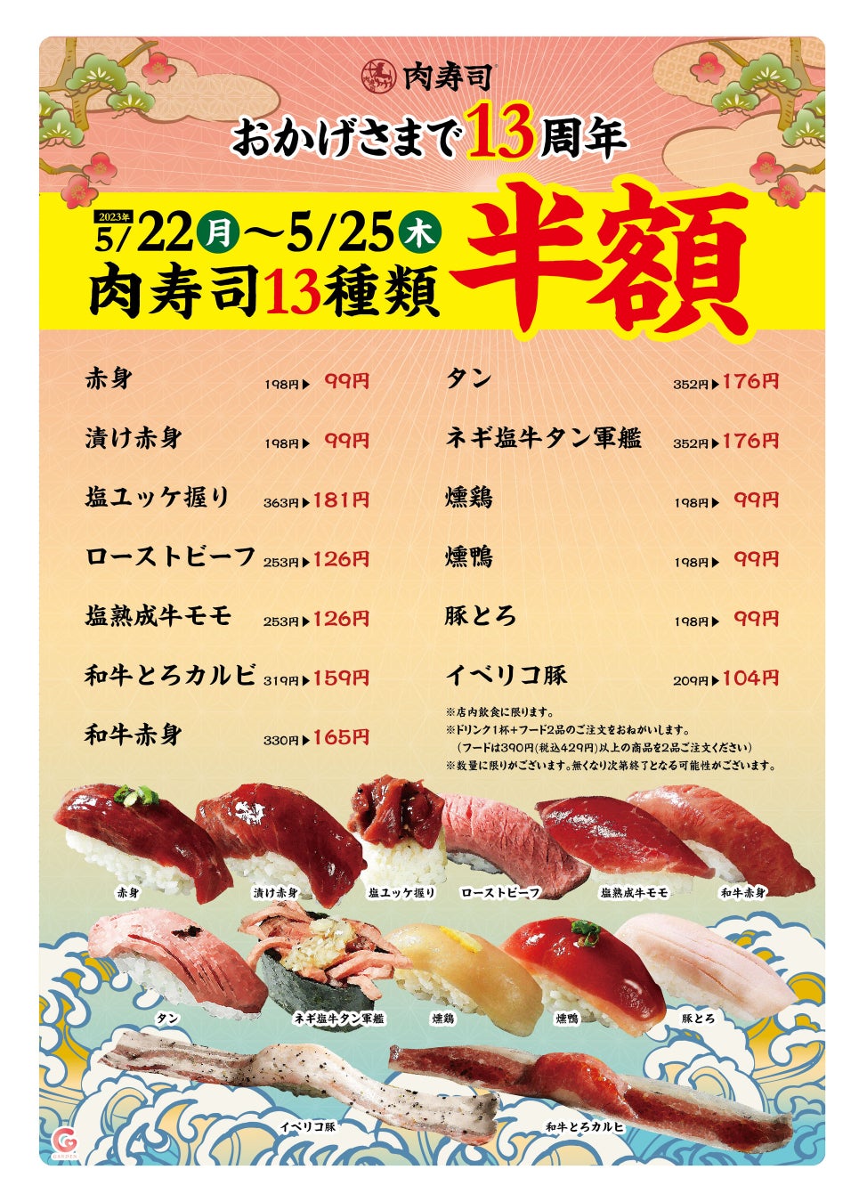 肉寿司創業13周年記念 創業祭開催|株式会社ガーデンのプレスリリース - PR TIMES