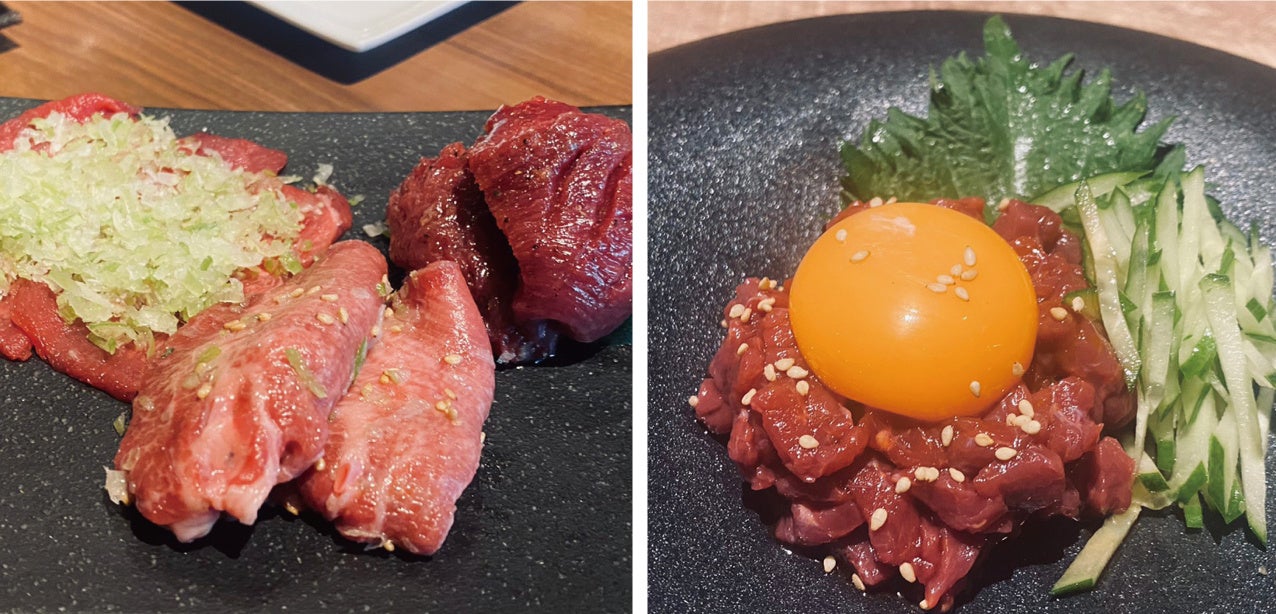 横隔膜の腹部と背中部の2種盛り合わせ。噛めば噛むほど旨味が出てくる人気の部位。